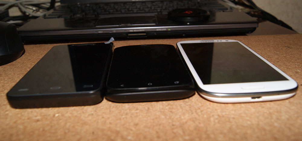 Сравнить данный аппарат визуально я могу только с HTC Desire V и Samsung Galaxy S3. Сравнивать техническую часть не имеет смысла т.к. аппараты разных периодов выпуска, поэтому только внешние различия. Ну а внешне китаец занимает середину между ними.