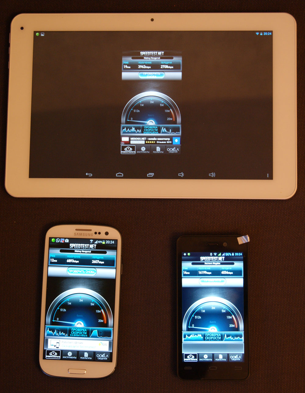 В ситуации когда в зоне видимости имеется много wifi сетей все телефоны показали примерно одинаковый результат, при этом Changhong W20 показал худший прием сигнала по сравнению с Samsung Galaxy S3, но в speedtest показал лучшие результаты. Выводом из проведенных тестов может быть то, что, в отличие от многих других китайцев, модуль wifi у Changhong W20 работает очень достойно.
