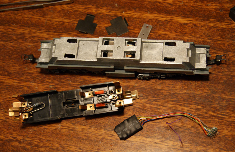 Сначала действующие лица: разобранный BR120 и декодер Modelldepo LGR1, имхо этот декодер лучшее сочетание цены и функций, плюс к этому ток на мотор 1.4А очень полезное качество для старых локомотивов.
