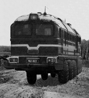 Хоть это фото и очень похоже на монтаж (если присмотреться то на крыше кабины и буферных фонарях снег лежит или иней, а на земле и намёка нет на зимнюю погоду. Да и лес вдали с листвой. Всё выбивает тень под кузовом, земля и колёса весьма отличаются по яркости. Информация отсюда), оно размещено на сайте НПЦ «Специальное машиностроение» МГТУ им. Н.Э. Баумана, где заявляют о том что заканчивается строительство уникального образца шестиосного внедорожного колесного тягача мощностью 1450 л.с. и массой около 90 т. с 12–ю электромоторколесами всех 12 управляемых колес.